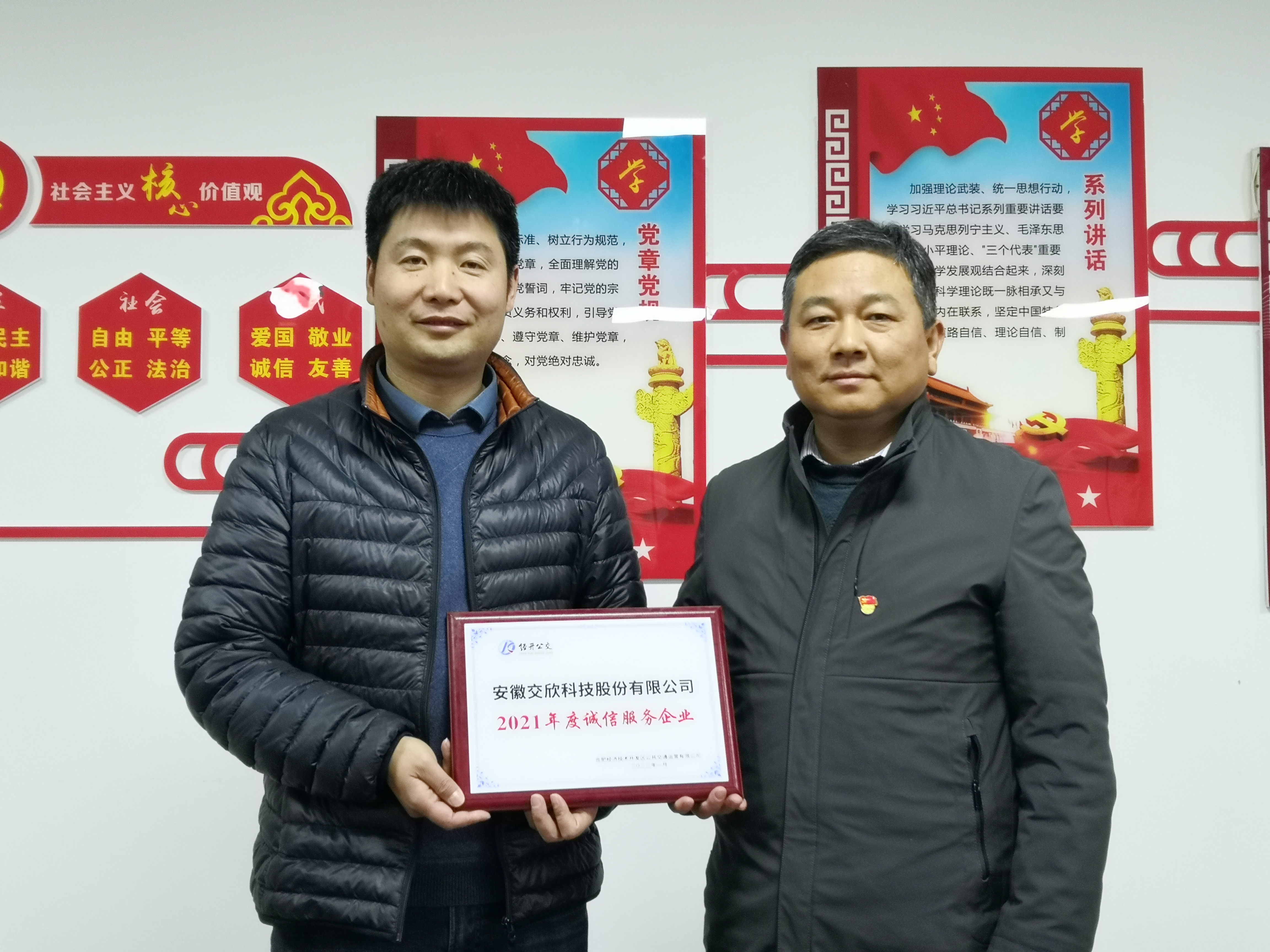 信用是企業(yè)寶貴的無形資產(chǎn),是企業(yè)的誠信名片和市場通行證。交欣科技自成立以來,一直規(guī)范自身經(jīng)營,重視誠信建設(shè),贏得了業(yè)界的高度贊譽(yù)。 此次榮獲合肥經(jīng)開區(qū)“2021年度誠信企業(yè)”,有力的提升了企業(yè)市場競爭力,為公司今后開展業(yè)務(wù)、開拓市場增添了優(yōu)勢。同時,這代表著公司的企業(yè)信譽(yù)和優(yōu)質(zhì)的服務(wù)獲得了市場的高度認(rèn)可,我們將以此為契機(jī),再接再厲,以質(zhì)量求生存,以信譽(yù)求發(fā)展,不斷打造品牌文化,踐行誠信經(jīng)營,為客戶提供更加優(yōu)質(zhì)地服務(wù)!