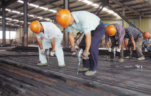 來源:《安徽日?qǐng)?bào)》連日來,安徽富煌鋼構(gòu)股份有限公司板材車間工人加緊生產(chǎn)活動(dòng)板房房板。