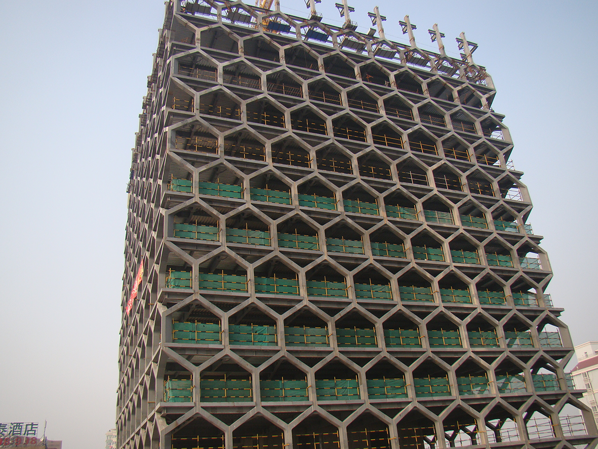 該課題深入研究了類“蜂窩形”鋼結(jié)構(gòu)體系在超高層建筑中的關(guān)鍵技術(shù),主要包括類“蜂窩形”、“十字形”、“網(wǎng)格形”等為基本結(jié)構(gòu)單元的復(fù)雜節(jié)點在高層、超高層鋼結(jié)構(gòu)建筑中的受力分析、基于三維軟件模擬的新型構(gòu)件節(jié)點深化設(shè)計方法、類“蜂窩形”鋼結(jié)構(gòu)外筒與鋼筋混凝土核心筒之間存在兩種結(jié)構(gòu)材料施工豎向協(xié)調(diào)成形等技術(shù)問題,有效解決了成品加工的全過程精度控制難題和超高層鋼結(jié)構(gòu)建筑雙Y型、斜交網(wǎng)格鋼框架結(jié)構(gòu)高空吊裝與原位焊接的技術(shù)難題,有效提高了類“蜂窩形”鋼結(jié)構(gòu)體系超高層建筑的建造精度,保證了工程質(zhì)量,整體提升了我國超高層鋼結(jié)構(gòu)建筑建造技術(shù)水平。