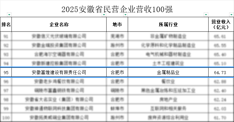 富煌集團雙榜題名|榮登2025安徽省民營企業(yè)營收百強與制造業(yè)百強榜單