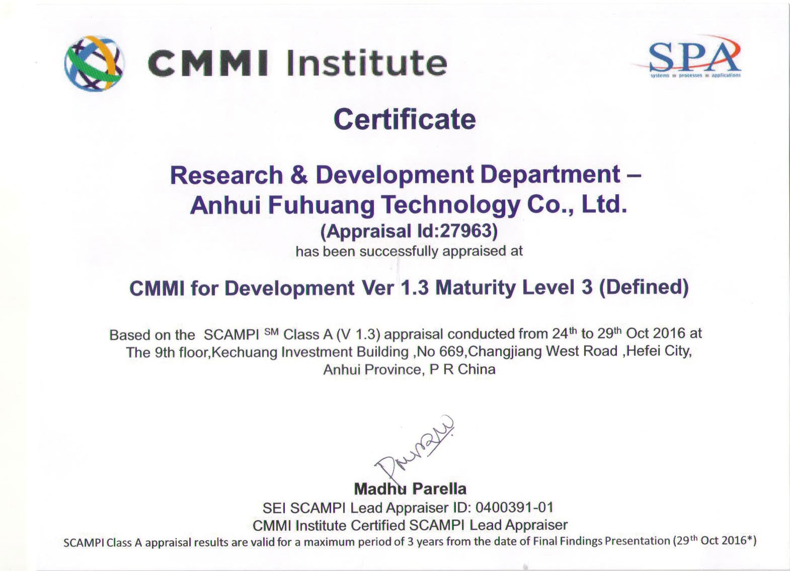 11月4日,安徽富煌科技股份有限公司成功通過了CMMI3認(rèn)證,進(jìn)一步證明了企業(yè)自身具備優(yōu)秀的軟件開發(fā)及技術(shù)解決能力。