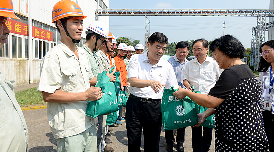 在慰問中,周恩平一行一邊將慰問品親自發(fā)放至職工手中,一邊叮囑職工在高溫季節(jié)注意防暑,做好自我調(diào)節(jié),增強(qiáng)自我保護(hù)意識,做到安全生產(chǎn),并對他們不畏酷暑、依然堅持奮戰(zhàn)在生產(chǎn)一線的敬業(yè)奉獻(xiàn)精神表示敬意,感謝他們?yōu)槠髽I(yè)發(fā)展、為巢湖市經(jīng)濟(jì)建設(shè)所付出的心血和汗水。