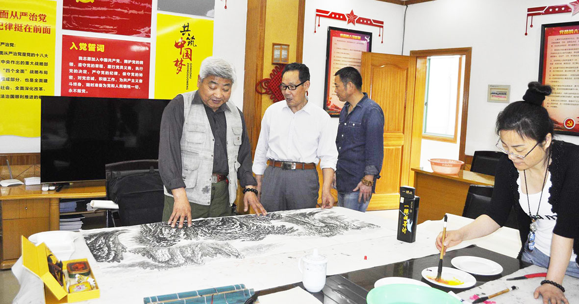 為豐富富煌員工的文化生活,活躍企業(yè)文化氛圍,5月5日,南京藝海潮書畫院書畫家一行10人在副院長方秀倫的率領(lǐng)下蒞臨富煌集團(tuán)傳經(jīng)送寶。