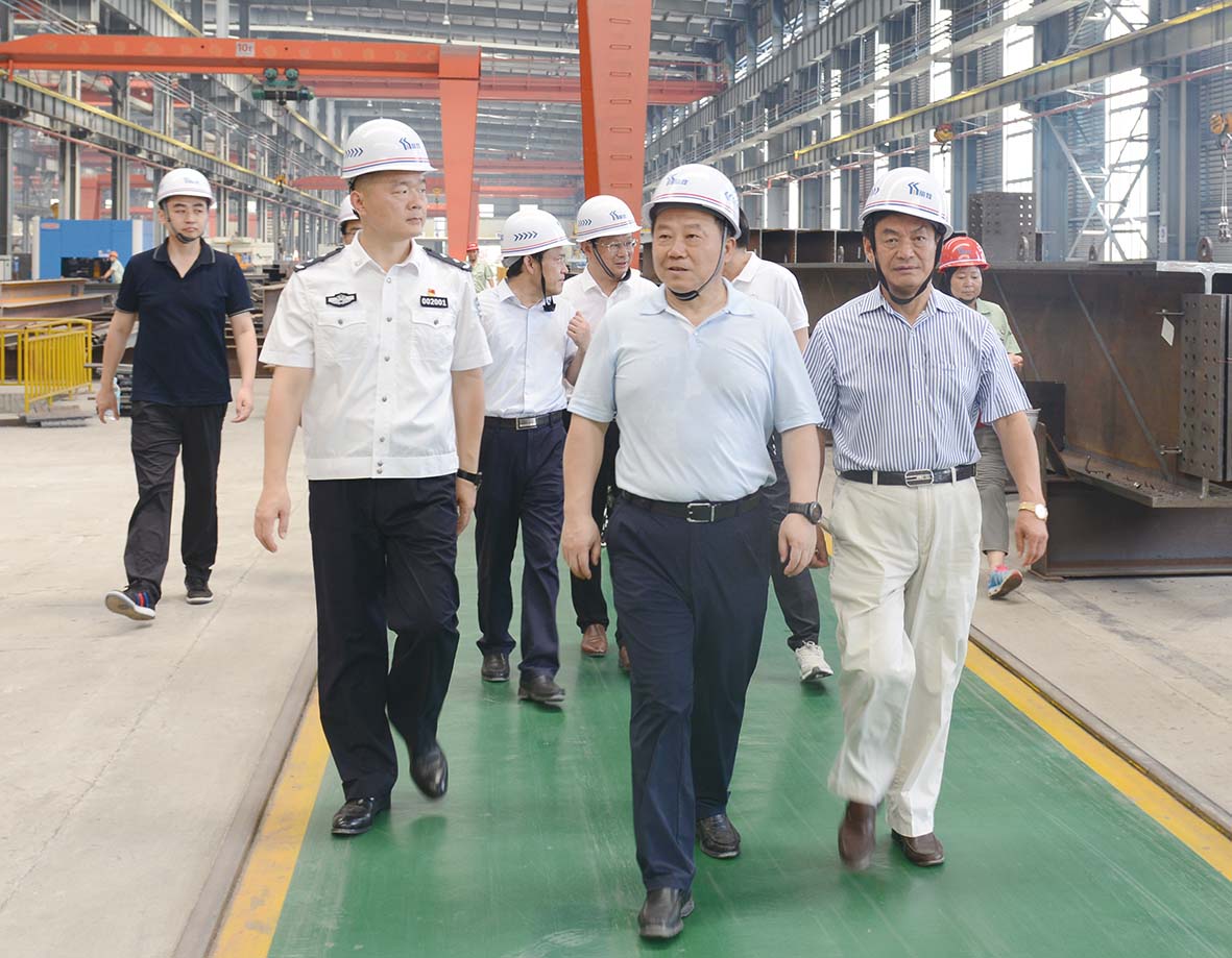 7月15日,安徽省委常委、合肥市委書記宋國權(quán)在巢湖市委書記耿延強,巢湖市委常委、常務(wù)副市長夏群山的陪同下蒞臨安徽富煌鋼構(gòu)股份有限公司考察指導(dǎo),富煌鋼構(gòu)董事長楊俊斌全程陪同參觀。
