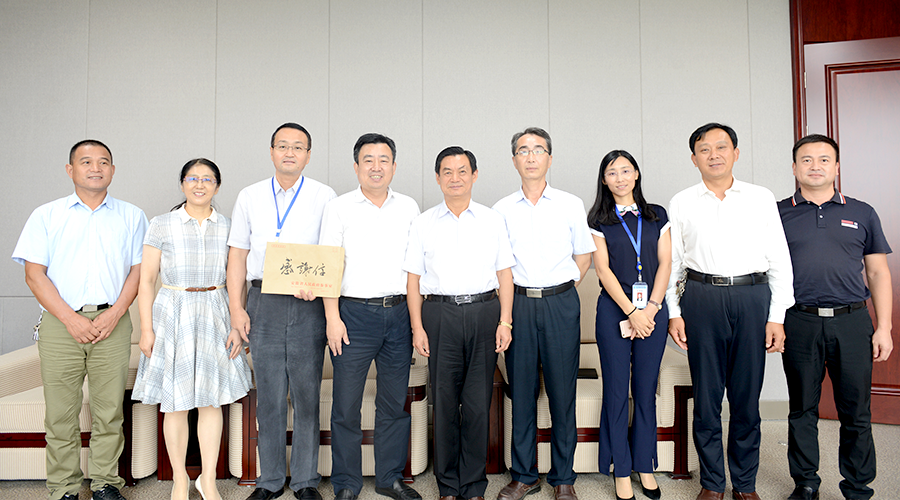 8月17日,安徽省政府參事室黨組書(shū)記、主任白和平攜省政府參事室辦公室相關(guān)人員、霍邱縣彭塔鄉(xiāng)西隱賢村黨支部書(shū)記趙以松親臨富煌集團(tuán),送來(lái)一封感謝信。感謝富煌集團(tuán)對(duì)西隱賢村的幫扶和關(guān)懷,對(duì)省政府參事室扶貧工作的大力支持。富煌集團(tuán)董事長(zhǎng)楊俊斌熱情接待了白和平一行。