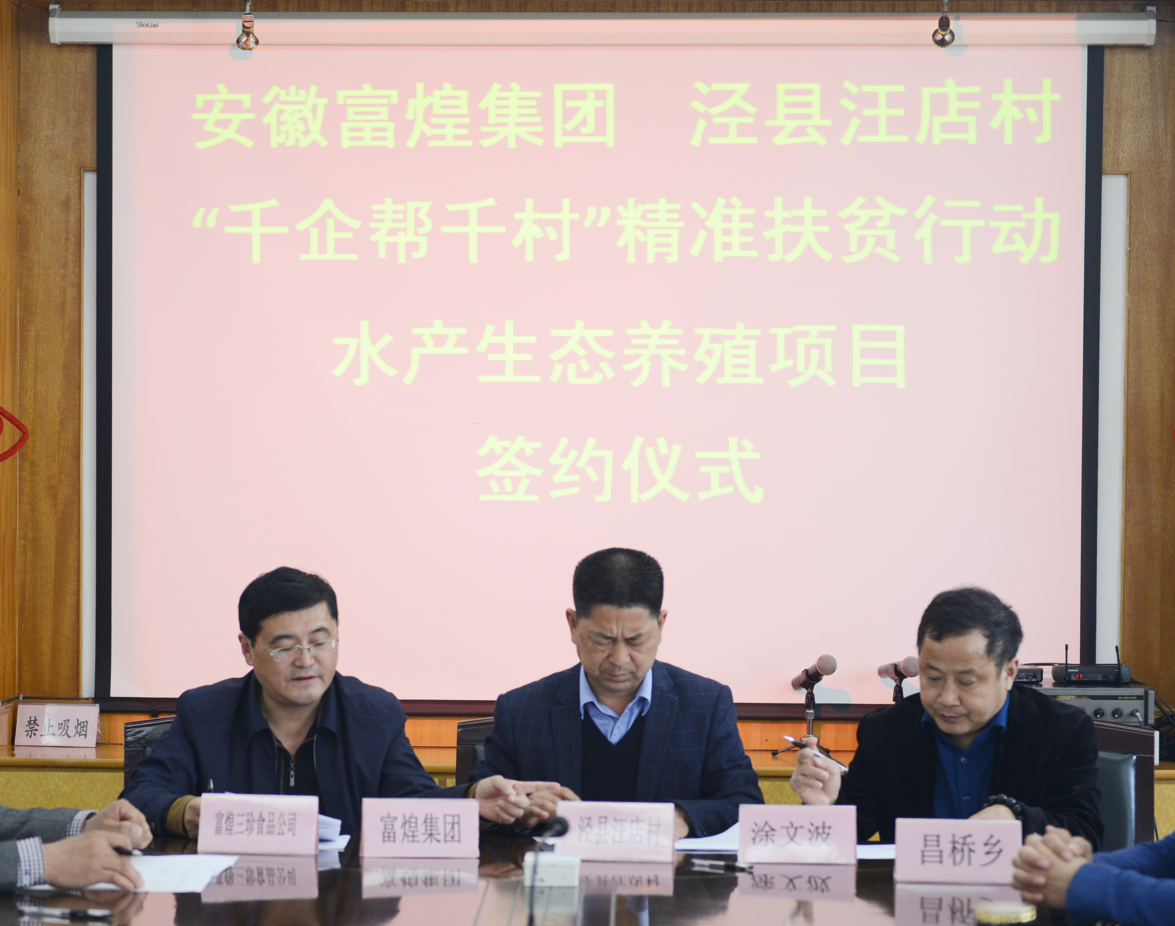 2017年4月,富煌三珍與涇縣昌橋鄉(xiāng)汪店村結成扶貧對子。同年8月,富煌集團又以一企多村形式與巢湖市黃麓鎮(zhèn)合群村委會結成幫扶對子,就水產(chǎn)生態(tài)養(yǎng)殖相關事宜簽訂合作協(xié)議,幫助貧困村脫貧出列。自幫扶活動開始,富煌積極行動,多次組織召開扶貧專項會議,對照幫扶村的實際情況,制定出了有針對性的扶貧方案。三年來,公司按照上級要求,認真貫徹扶貧工作的一系列方針、政策和部署,嚴格落實企業(yè)扶貧責任。