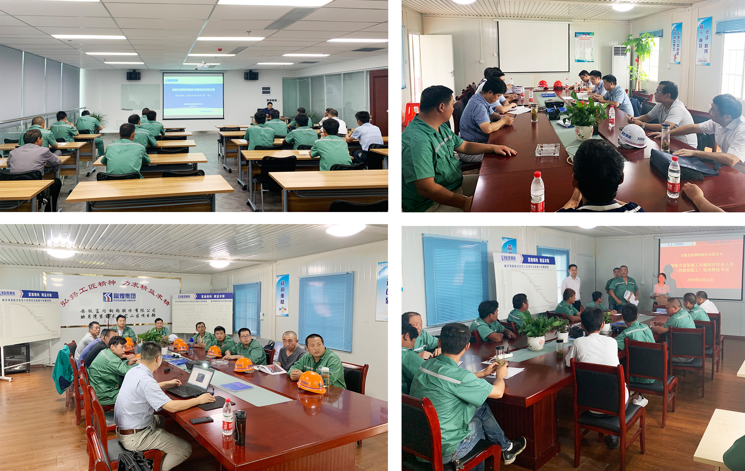 根據(jù)富煌鋼構(gòu)所承接巢湖市映月灣裝配式住宅小區(qū)項(xiàng)目的實(shí)際需要,以及合肥市建委“關(guān)于立即開展我市裝配式建筑施工關(guān)鍵崗位作業(yè)人員培訓(xùn)工作的通知”(合建產(chǎn)[2018]9號(hào))文件精神要求,富煌大學(xué)于2020年6-7月組織舉辦了裝配式建筑構(gòu)件裝配工的培訓(xùn)及考核。理論培訓(xùn)地點(diǎn)在富煌大學(xué)培訓(xùn)教室,實(shí)操培訓(xùn)地點(diǎn)在巢湖市映月灣裝配式住宅小區(qū)項(xiàng)目樣板房工地。