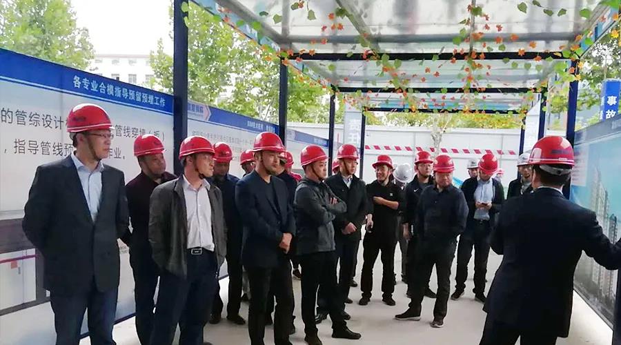 會后,與會人員在富煌鋼構(gòu)常務(wù)副總裁、紫云廣場項目經(jīng)理畢水勇,富煌鋼構(gòu)副總裁沈萬玉,富煌鋼構(gòu)紫云廣場項目執(zhí)行經(jīng)理倪信等人員的陪同下觀摩了由富煌鋼構(gòu)承建的合肥市重點示范工程——合肥紫云廣場項目。觀摩期間富煌鋼構(gòu)副總裁沈萬玉向各位領(lǐng)導(dǎo)詳細介紹了本項目實施過程中的總承包管理、質(zhì)量安全管控、自承式樓板支撐體系、BIM+智慧化工地技術(shù)應(yīng)用、裝配式鋼結(jié)構(gòu)的施工工藝等關(guān)鍵技術(shù)的應(yīng)用。