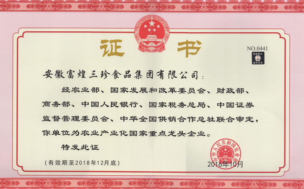 三珍食品農(nóng)業(yè)產(chǎn)業(yè)化國家重點龍頭企業(yè)